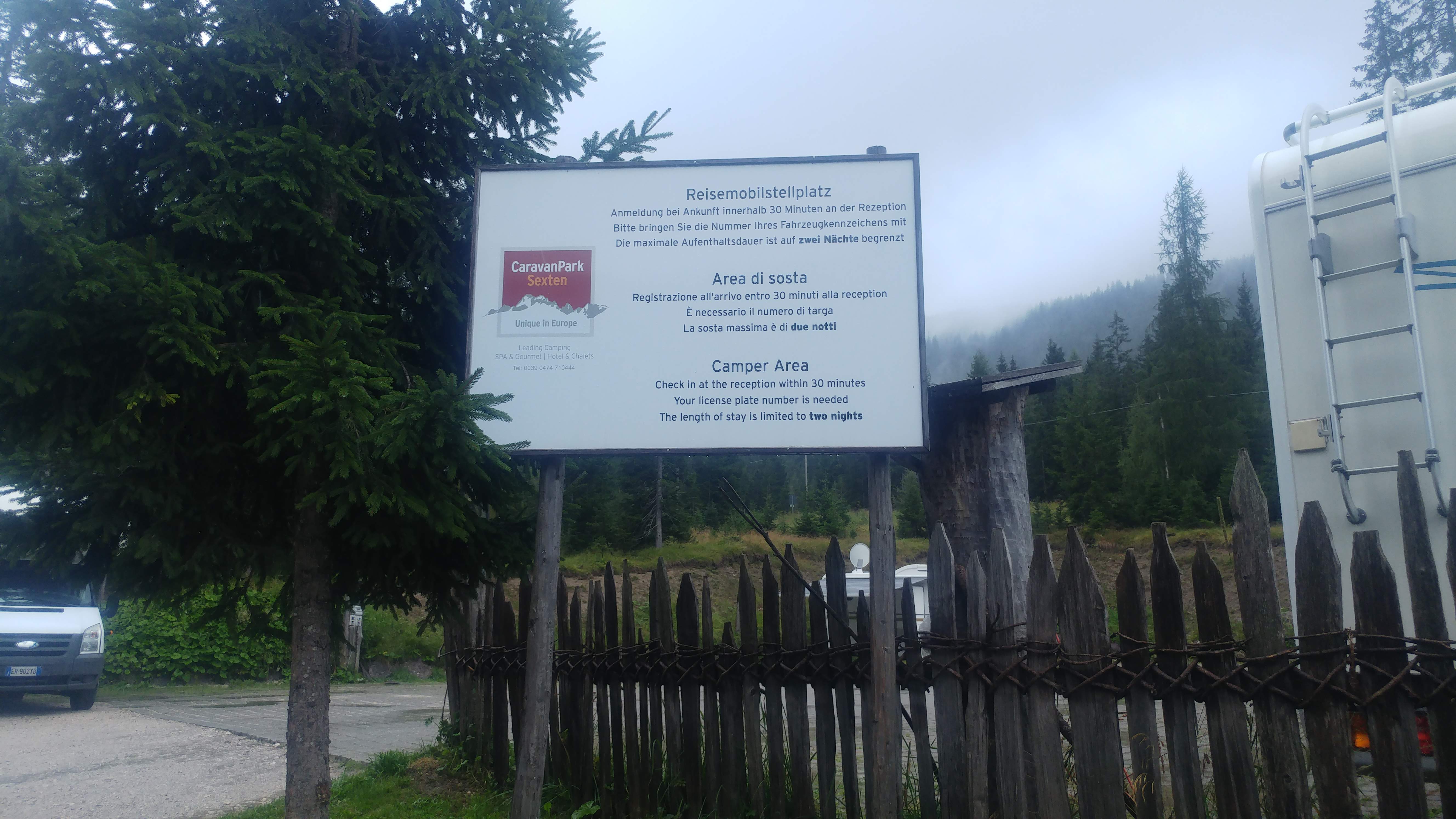 Se siete alla ricerca di un’area camper comoda per visitare l’Alta Pusteria, ben attrezzata, ideale per un soggiorno di passaggio (sosta massima per due notti) o fugace e che nel contempo sia in grado di offrire i servizi di un campeggio cinque stelle, vi suggerisco l’area camper presente all’interno del Caravan Park. Sono 35 stalli, presenti su un piazzale che ha fondo piano (in ghiaia) privi di alberi. L’area è aperta tutto l’anno e permette di sostare dopo la registrazione alla reception del Caravan Park Sexten. Il prezzo parte da 24 euro al giorno in bassa stagione sino a 36 euro alta stagione e comprende tutte le persone presenti sul camper (che siate soli o il sette), corrente elettrica, docce, carico e scarico acque. Ovviamente tutti i servizi come ristorante, bar, pizzeria, shopping center e centro benessere possono essere utilizzati pagando l’ingresso dedicato o la consumazione effettuata