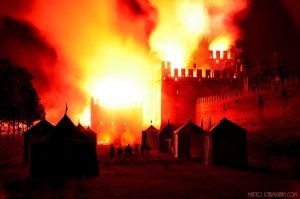- La sera non perdetevi i Giochi di Fuoco e Incendio della città, ovvero l’evento drammatico che la storia ci ha lasciato, di quando Ezzelino incediò Montagnana per placare la sua ira: “i vivi invidieranno i morti”. Gli armati i figuranti, la grande battaglia, i cavalieri con le spade infuocate ed infine l’incendio della rocca racconteranno, anche nelle sensazioni, quei terribili momenti.