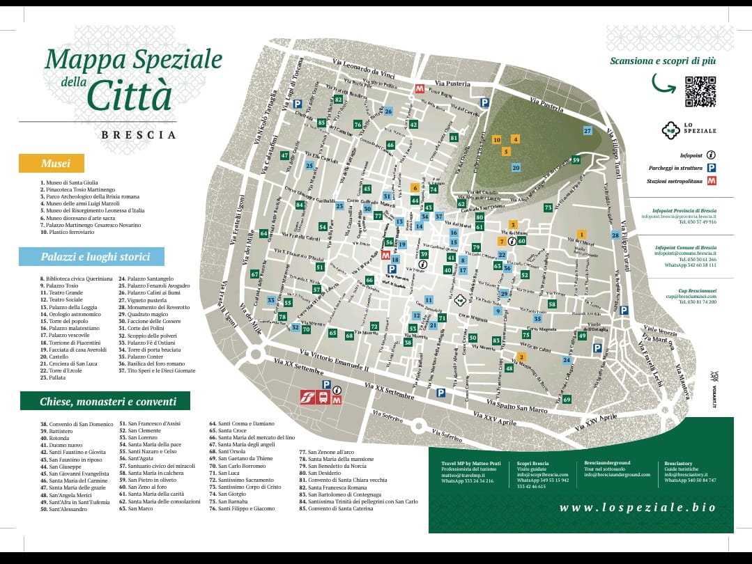 Dopo aver visitato le tappe che Luca vi suggerirà, fate una sosta e visitate Brescia sotterranea. Organizzate dall’Associazione Speleologica Bresciana le visite guidate per singoli e gruppi consentono di accedere all’interno degli ambienti sotterranei, gallerie, torri e bastioni per meglio conoscere un monumento fondamentale nella storia della città di Brescia: il suo castello. Sono proposti diversi itinerari, alcuni molto semplici ed accessibili, altri più avventurosi e speleologici, sempre in totale sicurezza. Per gruppi numerosi già precostituiti le visite possono essere richieste in qualsiasi giorno dell’anno, mentre le prenotazioni individuali, delle famiglie o di gruppi inferiori a 15 persone rientrano in un calendario prefissato nel quale le visite si effettuano esclusivamente nei giorni di sabato o domenica, pubblicato sul sito dell’Associazione.