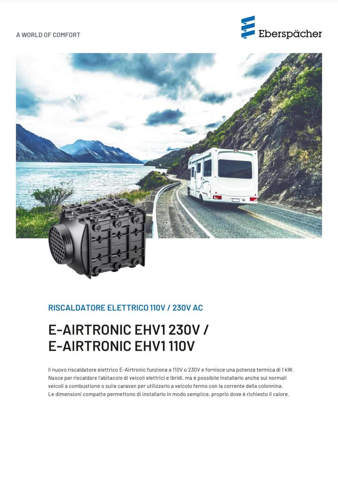 In sintensi Eberspeacher EHV1 230V non è un sostitutivo dell’impianto originario del camper o del caravan, ma bensì affianca il sistema tradizionale e funziona in modo autonomo per veicoli compatti (mini van, mini caravan o van), sino a temperature esterne di 7/9 gradi. Per veicoli più grandi è necessario a mio parere installare due riscaldatori. In funzionamento combinato con il sistema primario, riduce il consumo di carburante e diffonde in modo più omogeneo l’aria nell’abitacolo e nella cellula.