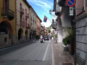 Partenza da Mondovi Piazza, dove merita la salita alla Torre Civica del Belvedere per un selfie magistrale con lo sfondo delle Alpi, e poi proseguimento lungo la Strada delle Cappelle fino a Vicoforte per una visita al Santuario che vanta la cupola ellittica in muratura più grande del mondo e 6000 mq di affreschi. Dopo aver superato l’abitato di San Michele si raggiunge Niella Tanaro da dove si sale fino a Marsaglia per poi proseguire lungo la strada cosiddetta “Pedaggera”: il paradiso del motociclista con una serie di curve e contro curve fino a Montezemolo, poi ancora curve nella discesa fino a Priero e Ceva, capitale del fungo e quindi Lesegno, dove si svolta per Torre Mondovi: da qui, attraverso una serie di curve e di paesaggi di altri tempi, si arriva fino a Viola St. Gréé per poi scendere fino a Viola Castello e proseguire in Val Tanaro passando prima per Priola e poi per Garessio, dove si svolta a destra per i 12 km di ascesa alla Colla di Casotto, divertimento assoluto per tutti i motociclisti. Si scende a Pamparato e si prosegue fino alla stazione sciistica presso San Giacomo di Roburent. Successivamente si prosegue direzione Mondovì.